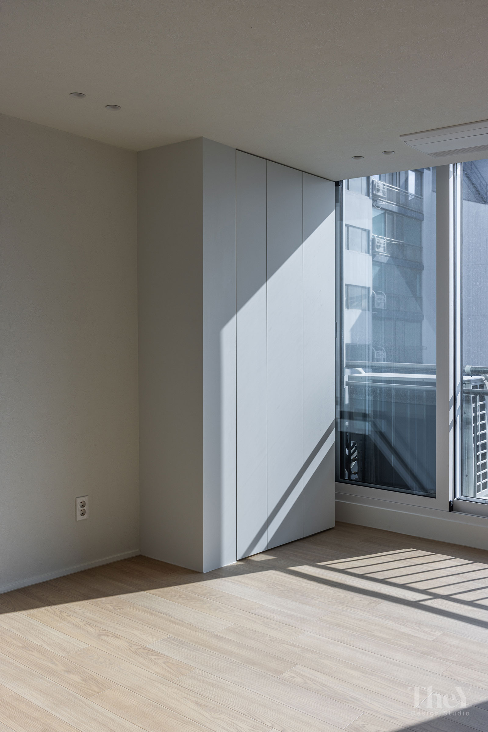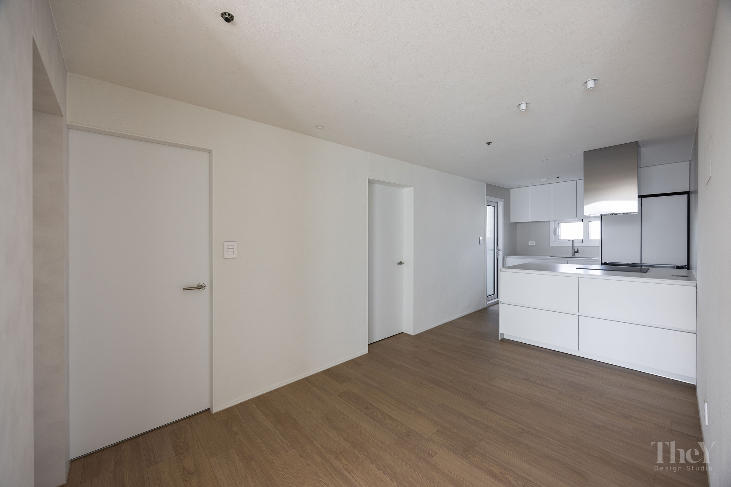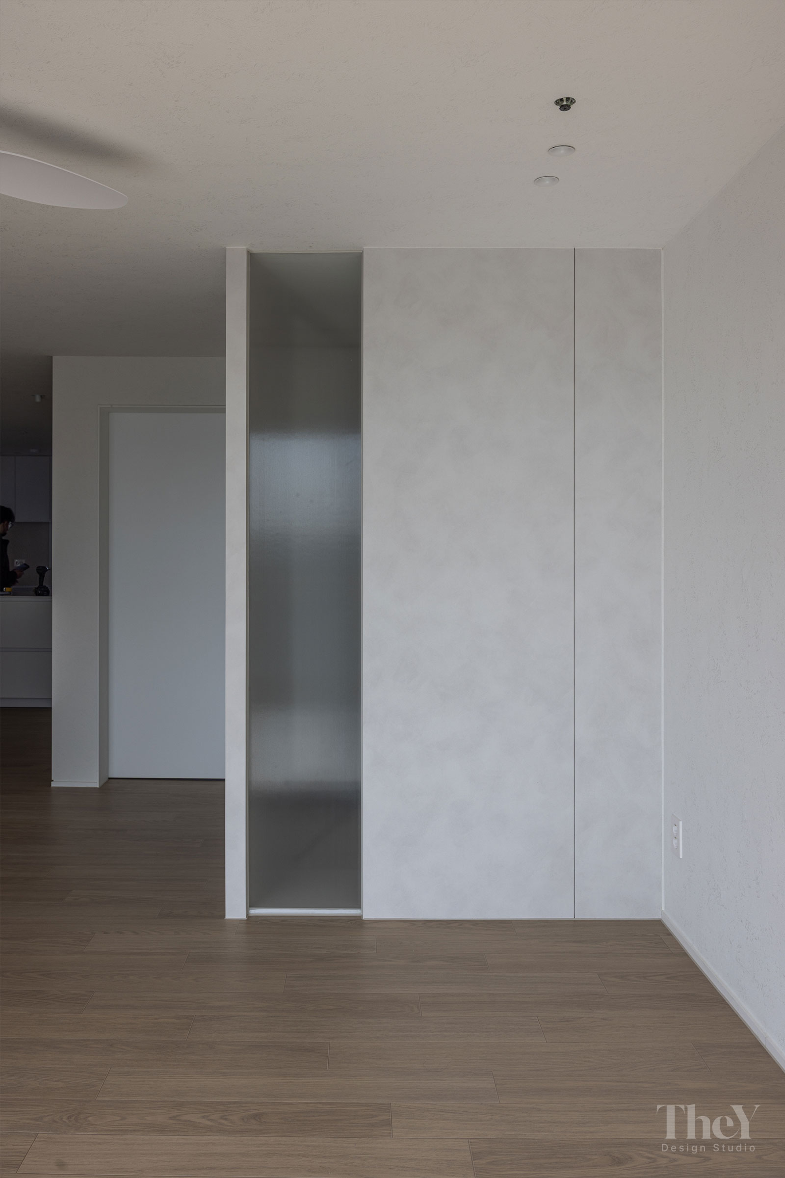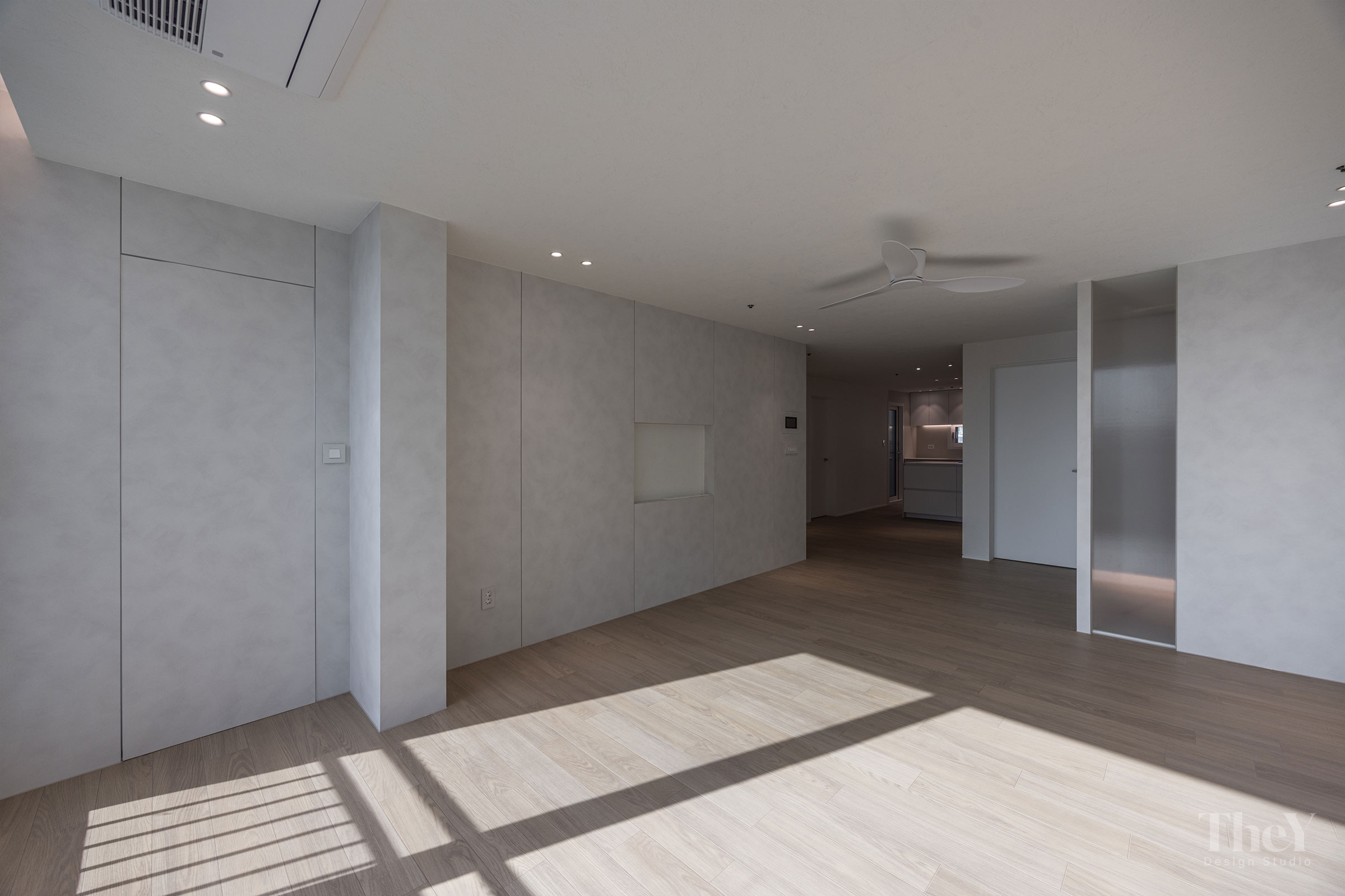 염창동 관음삼성 아파트 프로젝트는 '선과 면의 연속성'을 핵심 가치로 삼아 고급스럽고 절제된 미니멀리즘을 구현했습니다. 무몰딩 도배와 질감이 느껴지는 필름 마감 벽체를 적용하여 벽과 천장이 하나로 이어지는 시각적 일체감을 높이고, 공간에 시각적인 확장감을 부여했습니다. 바닥에는 안정적인 색감의 광폭 마루를 시공하여 따뜻함과 세련미를 더했습니다. 거실에는 매립 조명과 실링팬을 설치하여 기능성과 디자인을 모두 잡았으며, 주방 또한 군더더기 없는 화이트톤 수납장으로 깔끔한 동선을 완성했습니다. 디테일의 최소화로 탁 트인 전망과 자연광이 돋보이는 모던하고 세련된 주거 공간입니다.