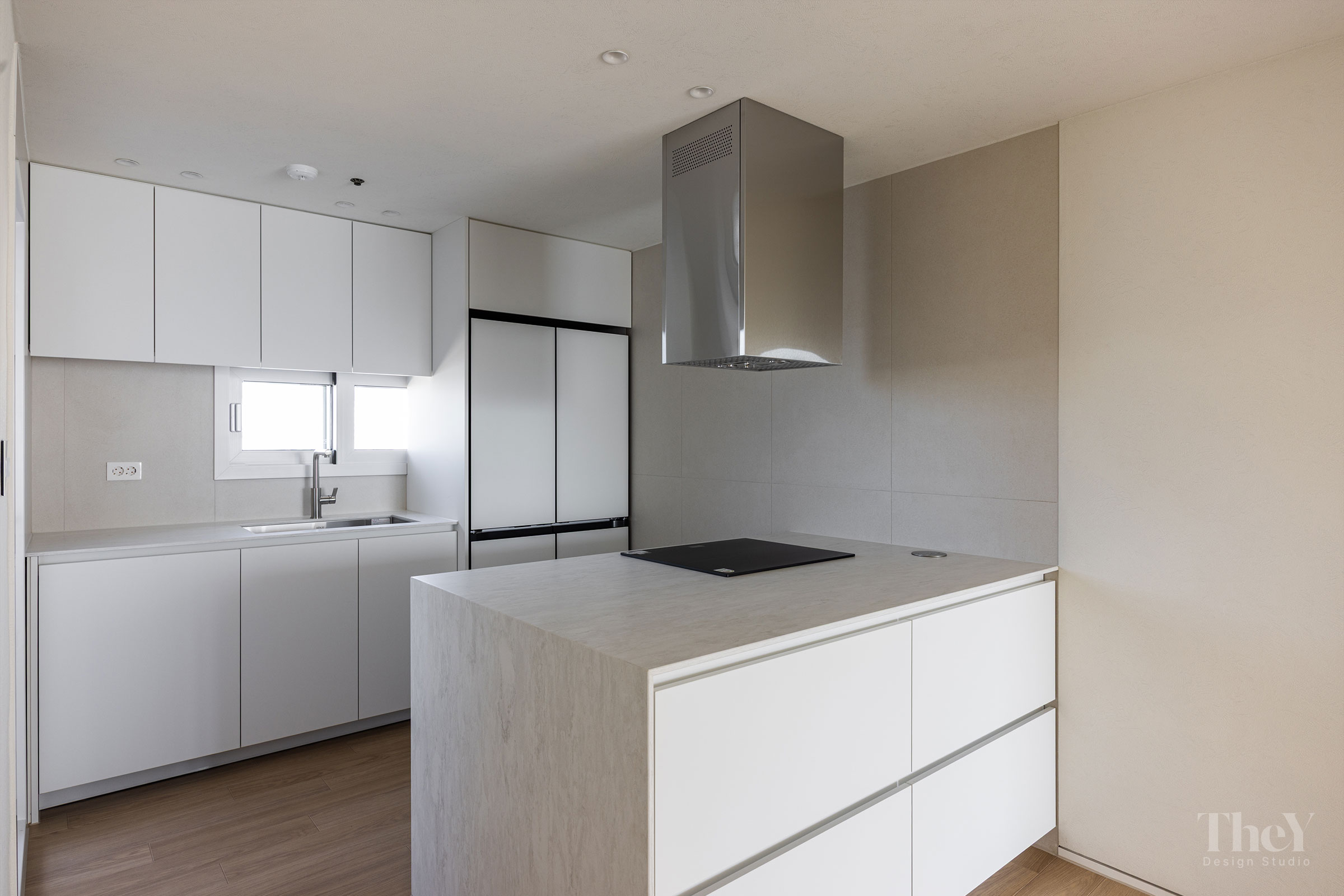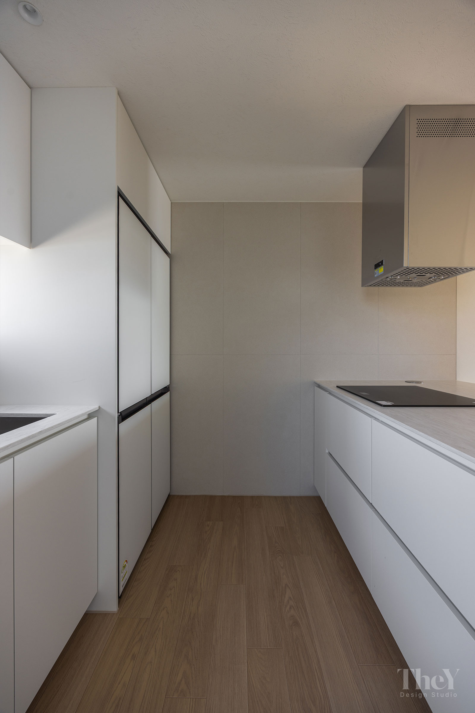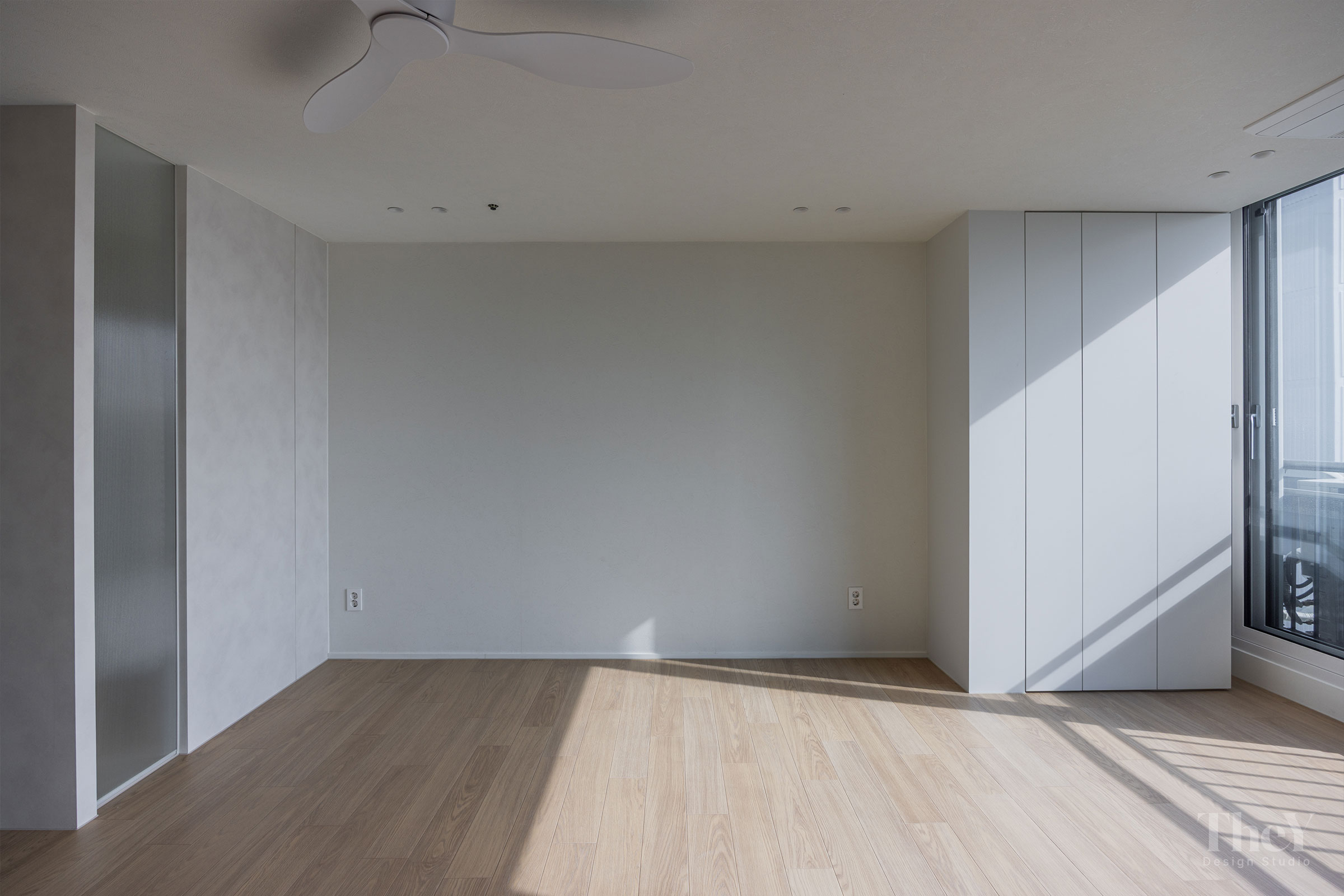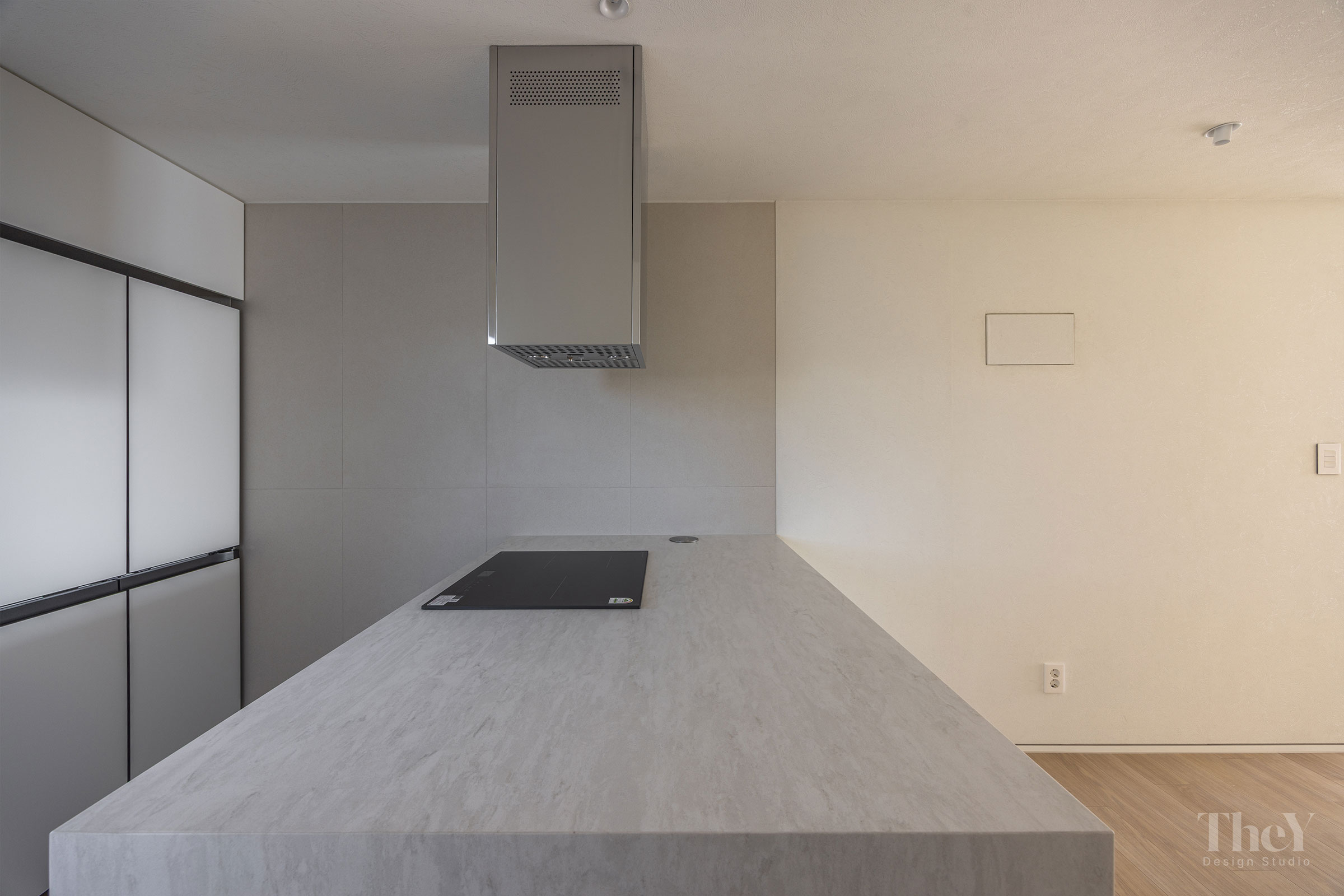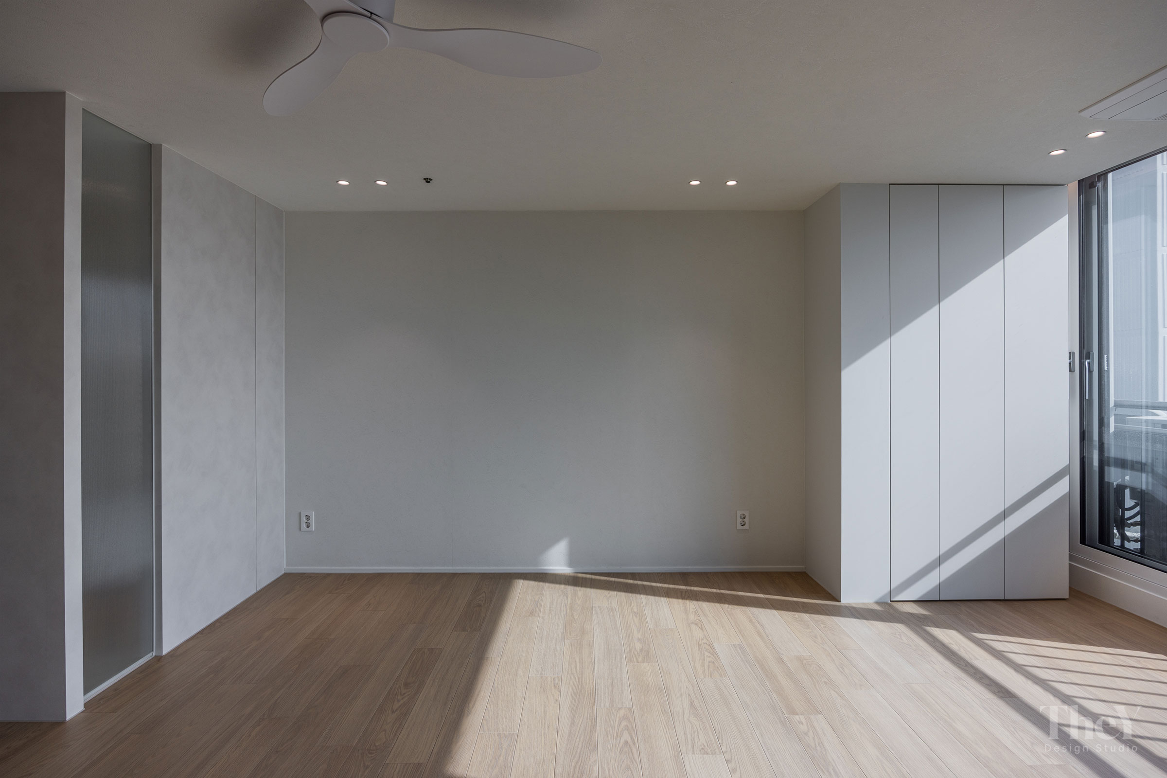 염창동 관음삼성 아파트 프로젝트는 '선과 면의 연속성'을 핵심 가치로 삼아 고급스럽고 절제된 미니멀리즘을 구현했습니다. 무몰딩 도배와 질감이 느껴지는 필름 마감 벽체를 적용하여 벽과 천장이 하나로 이어지는 시각적 일체감을 높이고, 공간에 시각적인 확장감을 부여했습니다. 바닥에는 안정적인 색감의 광폭 마루를 시공하여 따뜻함과 세련미를 더했습니다. 거실에는 매립 조명과 실링팬을 설치하여 기능성과 디자인을 모두 잡았으며, 주방 또한 군더더기 없는 화이트톤 수납장으로 깔끔한 동선을 완성했습니다. 디테일의 최소화로 탁 트인 전망과 자연광이 돋보이는 모던하고 세련된 주거 공간입니다.