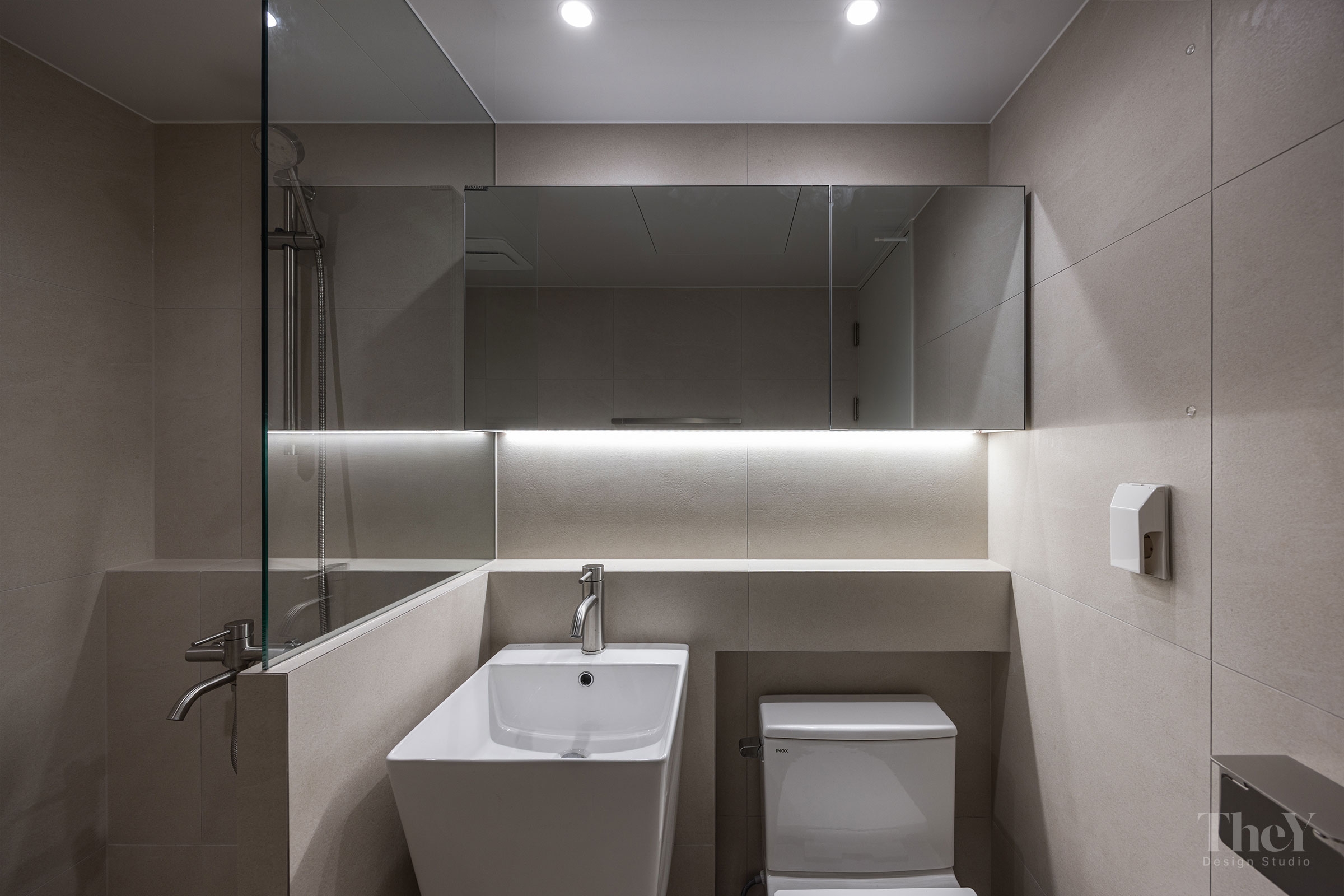 이번 프로젝트는 공간의 효율성을 극대화하면서도 정제된 고급감을 부여한 것이 특징입니다. 바닥은 관리가 용이하고 시각적으로 넓어 보이는 타일 느낌의 강마루를 시공하여 깨끗한 공간감을 확보했습니다. 벽면과 천장에는 간접조명을 포함한 다양한 레이어의 조명을 적용하여, 공간에 깊이를 더하고 부드럽고 편안한 분위기를 조성했습니다. 특히, 욕실은 톤 다운된 무광 타일과 깔끔한 수전, 미니멀한 세면대를 사용하여 호텔 욕실처럼 세련되고 아늑한 느낌을 연출했습니다. 군더더기 없는 마감과 효율적인 수납 설계가 돋보이는 모던 컴팩트 하우스입니다.